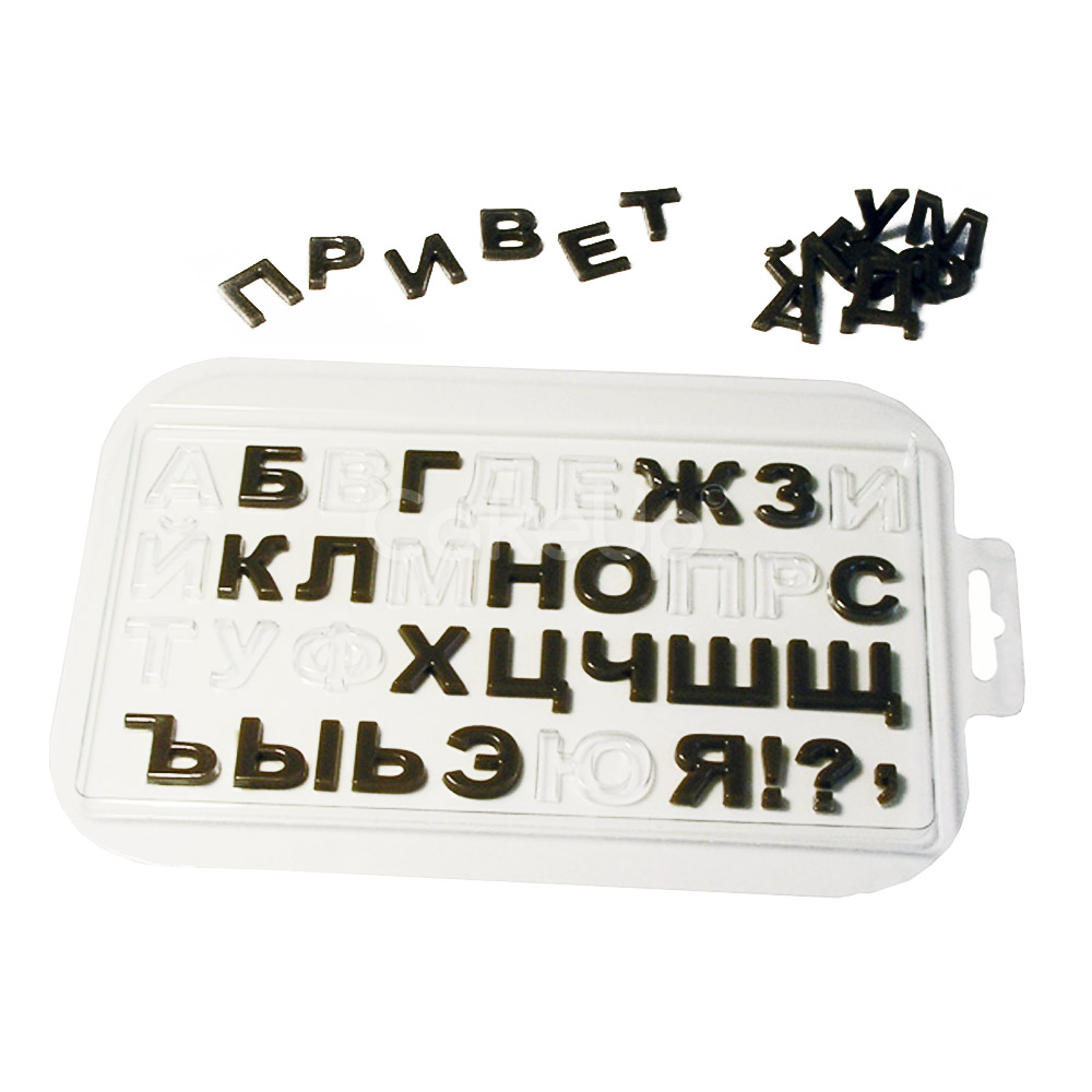 Пластиковая форма для создания шоколадных букв.