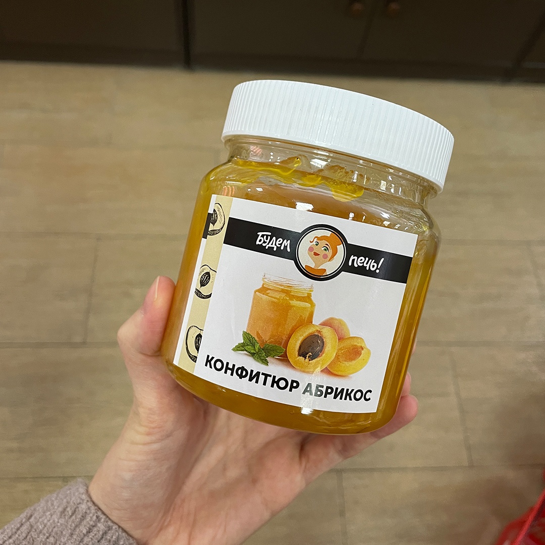 Состав: курага, сахар-песок, патока, загустители (Е1442 крахмал, Е440 пектин), регулятор кислотности, ароматизатор "Абрикос", сорбат калия, краситель, вода очищенная.